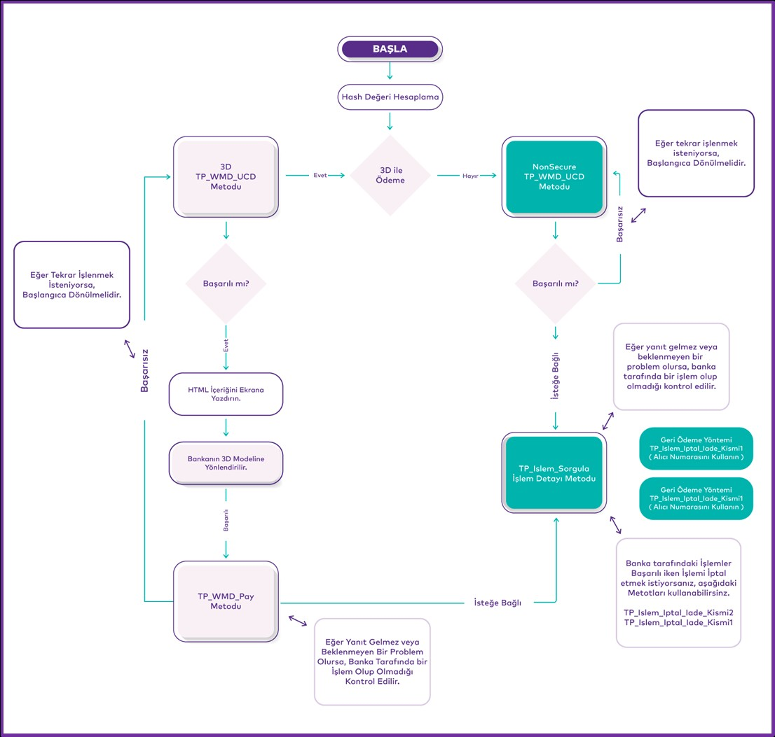 Bu metot, Nonsecure / 3D ödeme işleminin başlatılacağı metottur. (SanalPOS_ID parametresi kaldırılmıştır.) İşlem sonucu dönen 3D URL sine yönlendirme yapılır ve kredi kartı ile ödeme işlemi başlar.